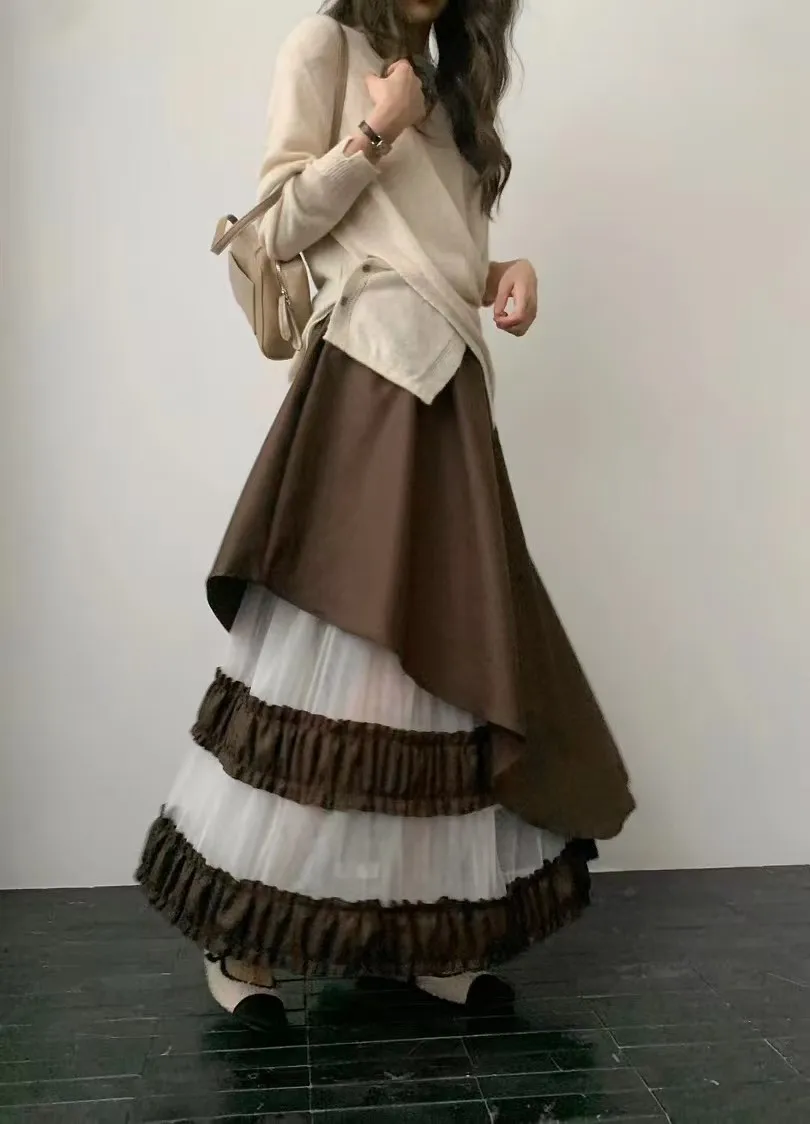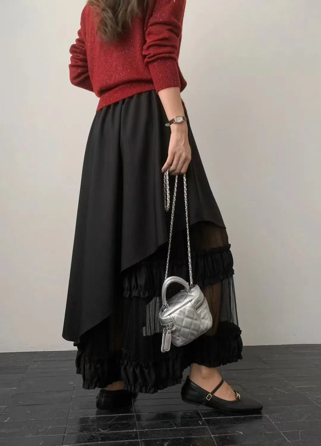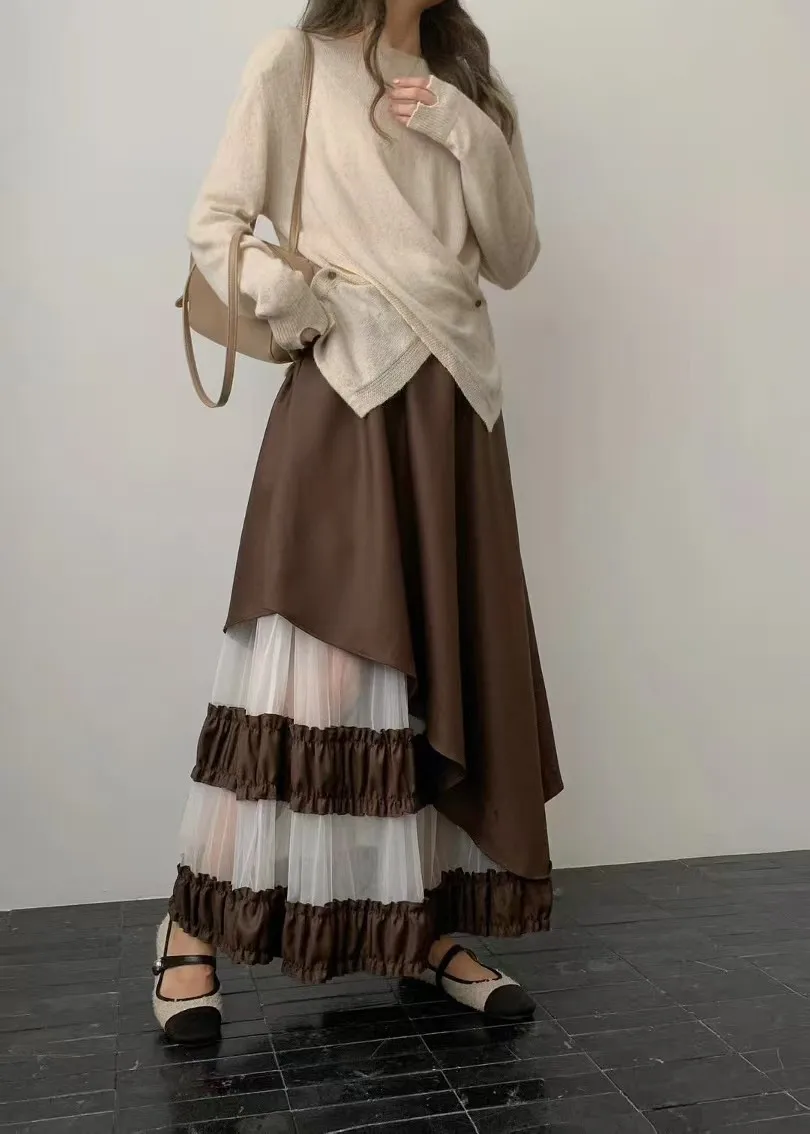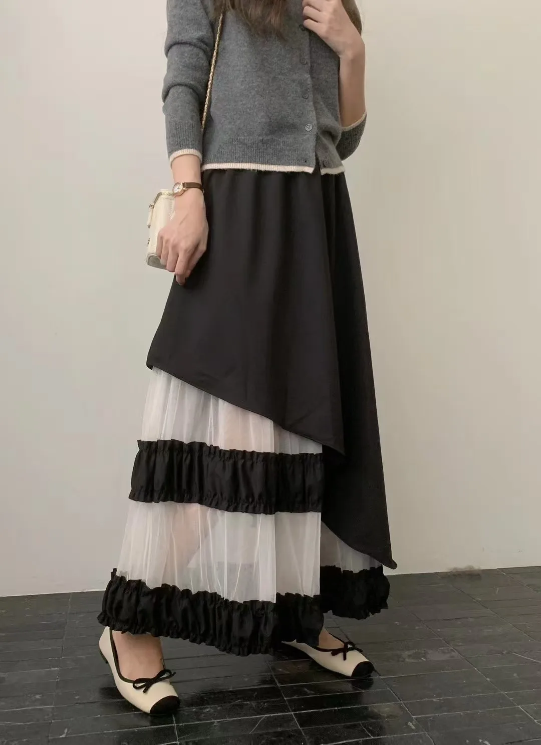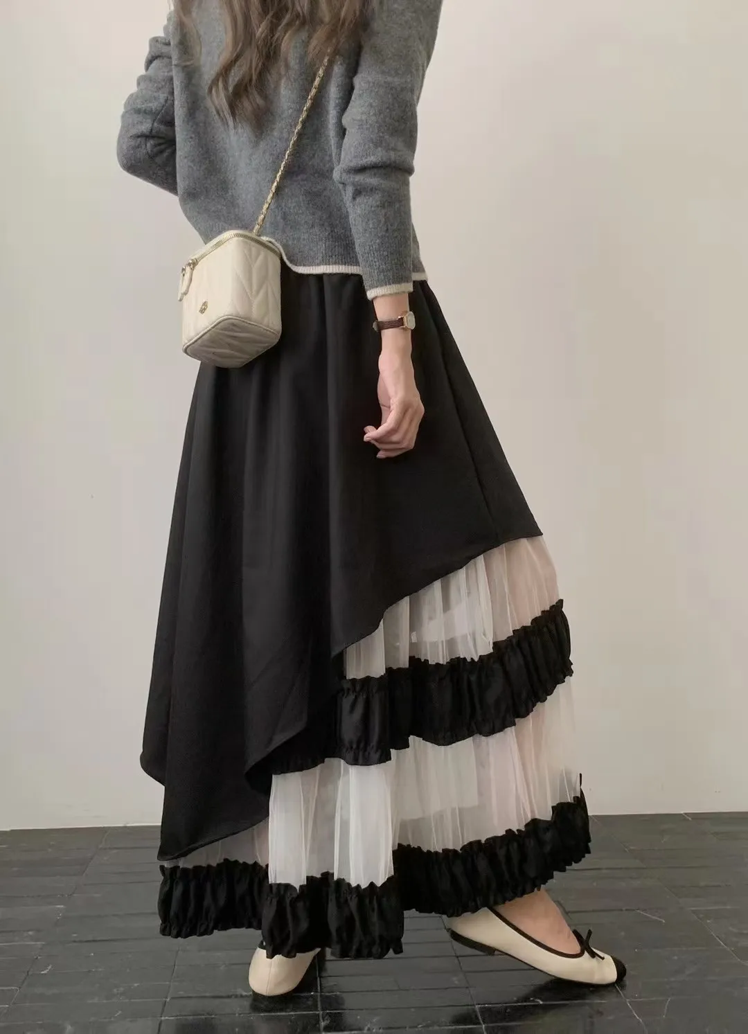 Featuring a distinctive irregular design, this half-length skirt adds a touch of elegance to any casual outfit.