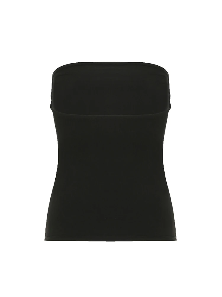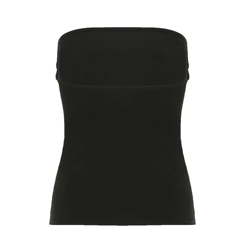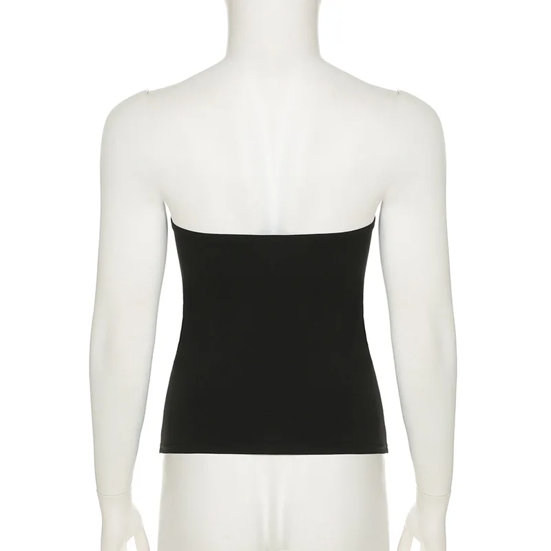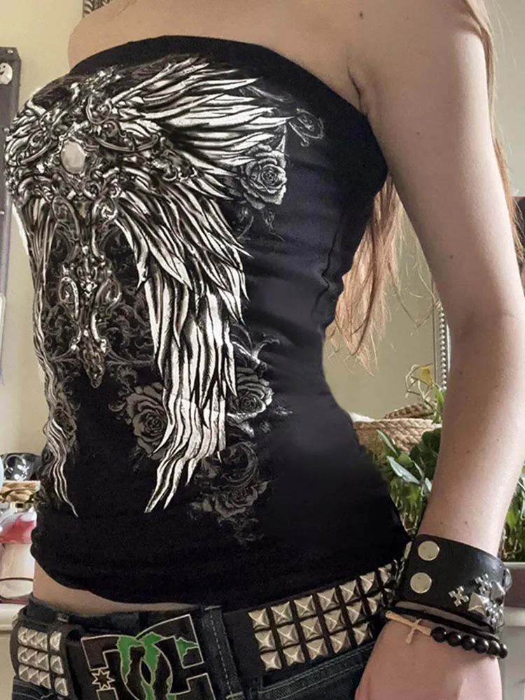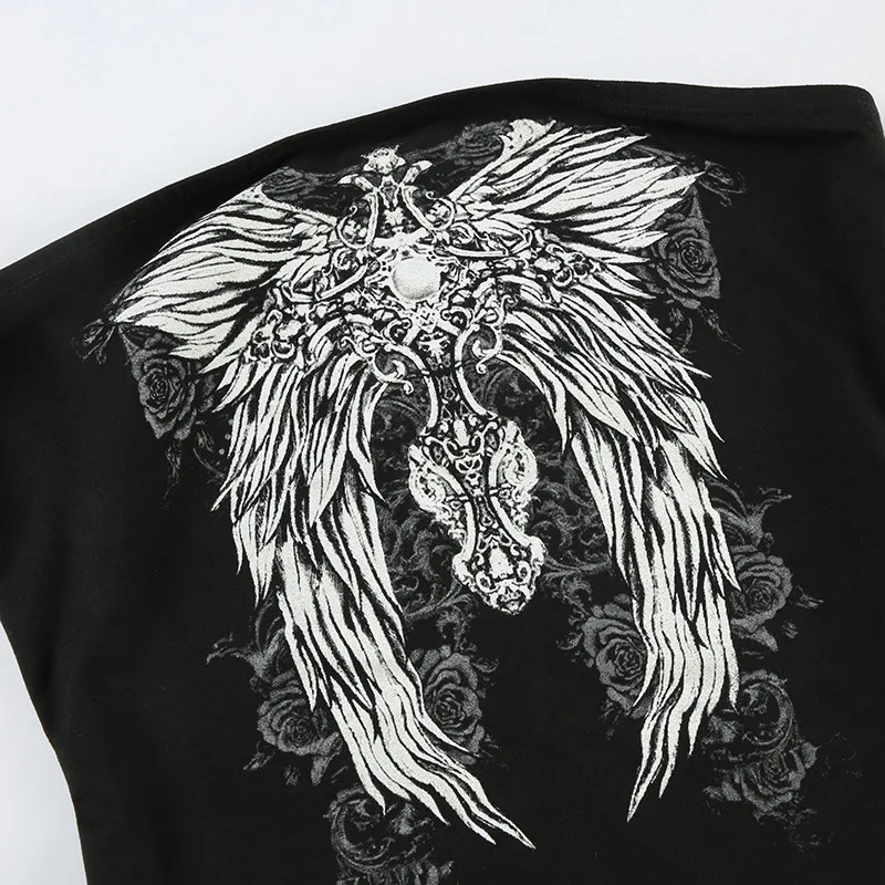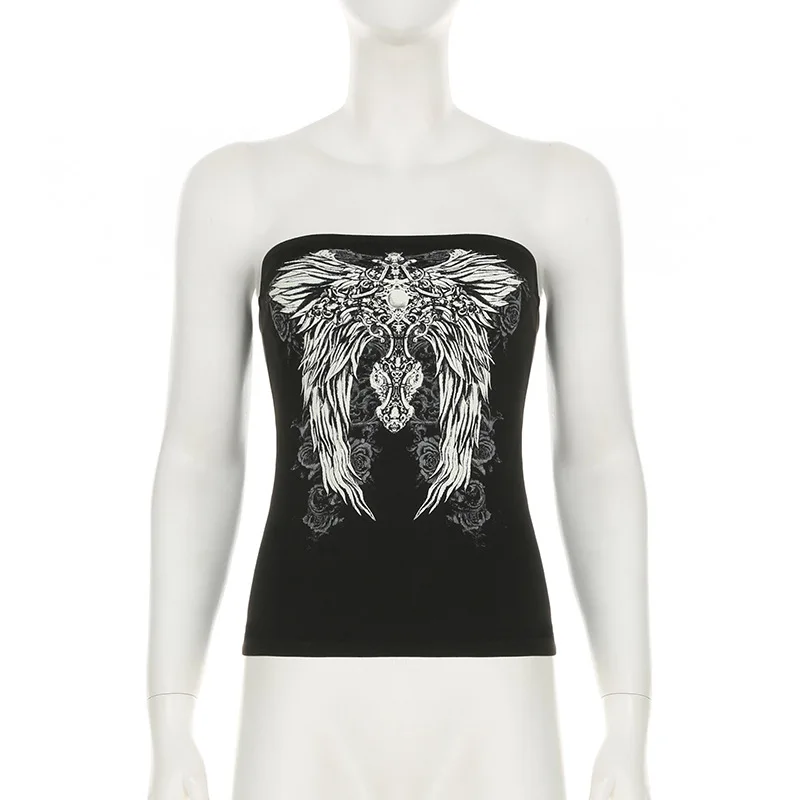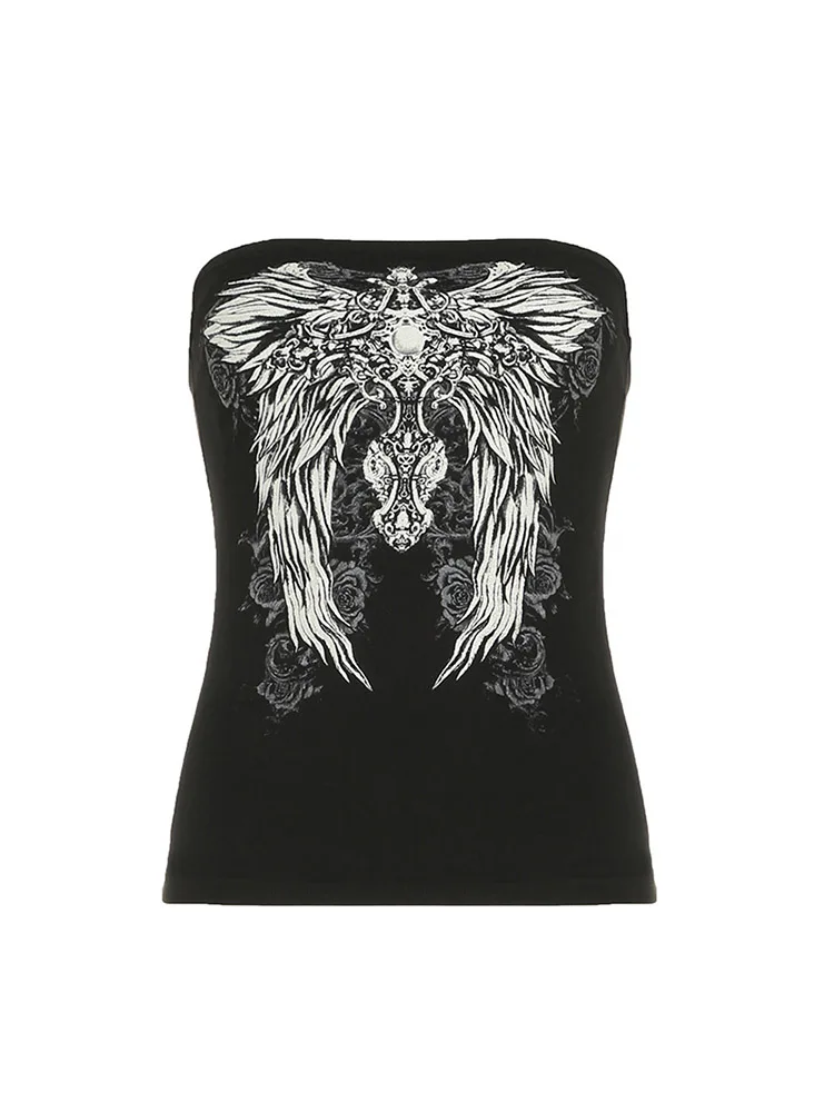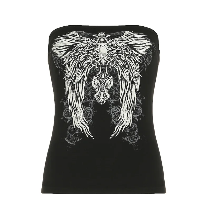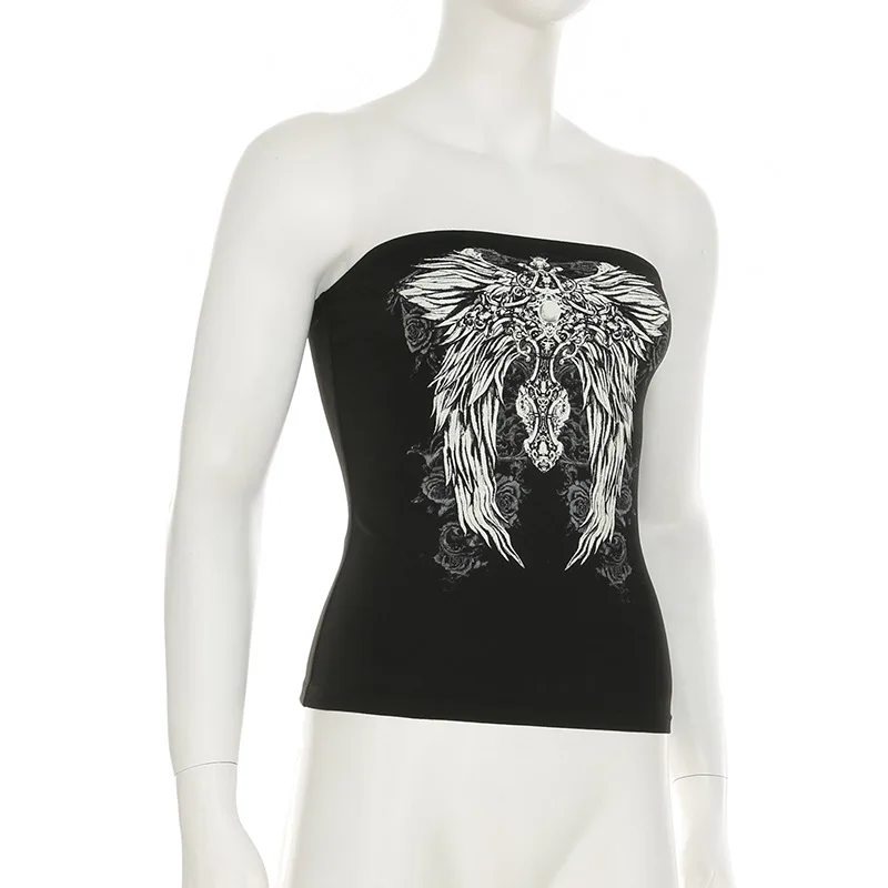 Gothic Print Black Tube Top Women Strapless Skinny Cropped Tops Summer Casual Chic Graphic Tees y2k Streetwear Vest Basic