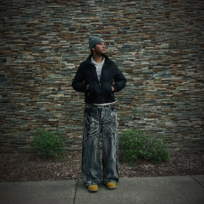 Y2K Phantom Jeans High Street Spider Embroidered Patch Hip Hop Streetwear