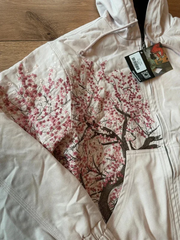 Harajuku Cherry Blossom Embroidered Hoodies Flower Tree Pattern Street Style Hooded Y2k Jacket Mens Womens Zipper Jackets