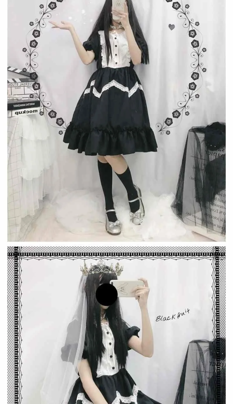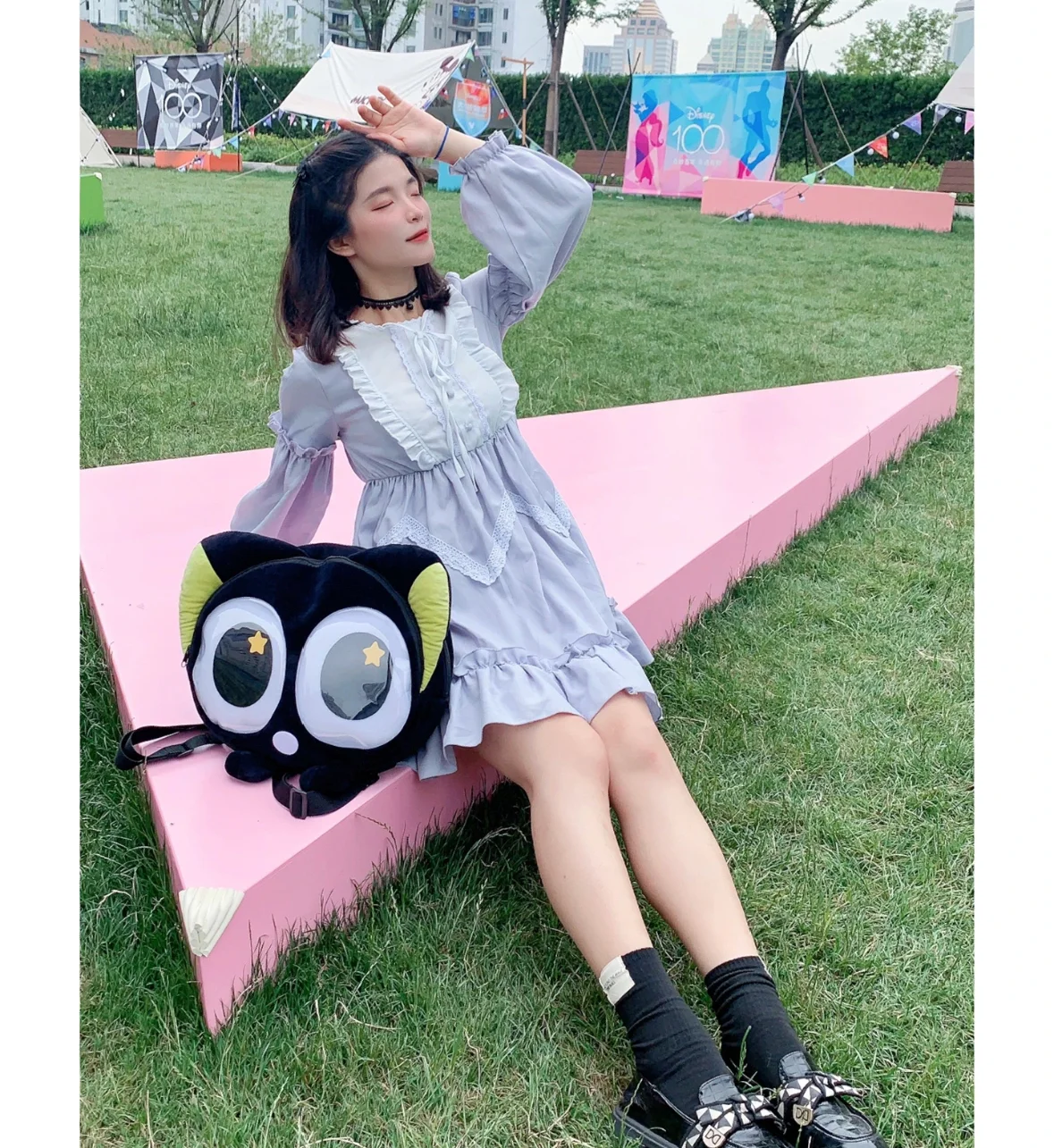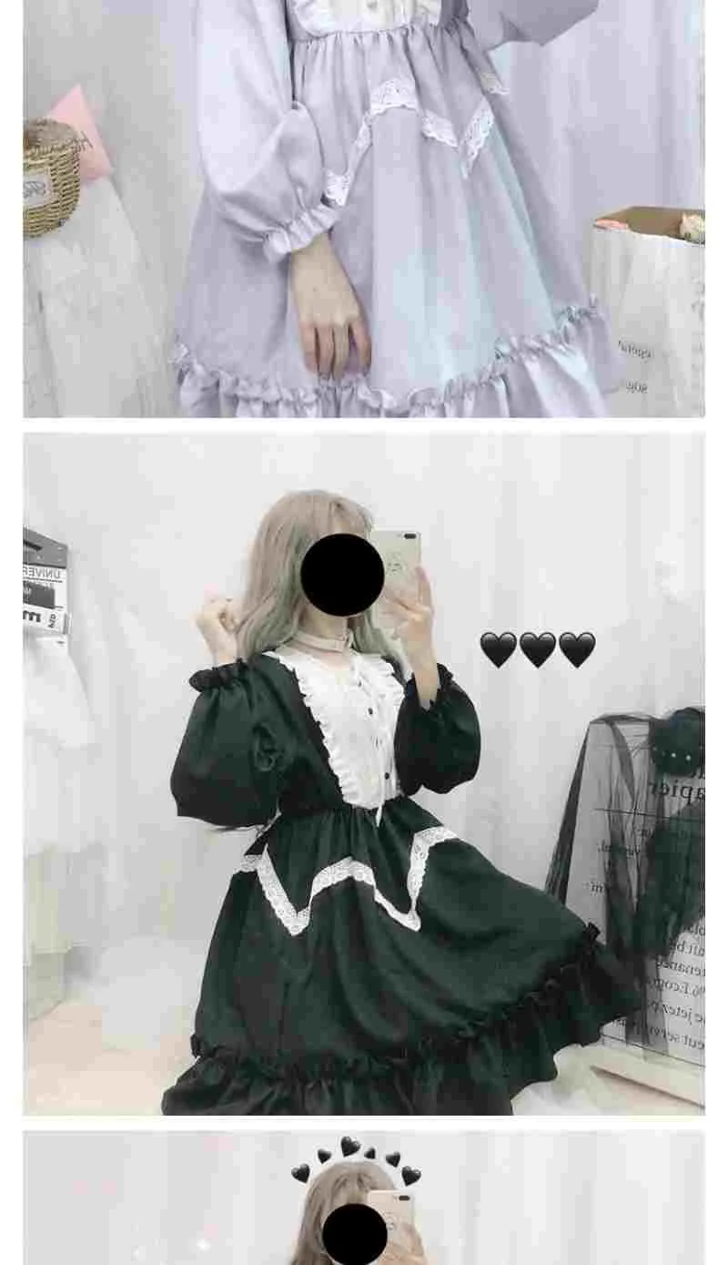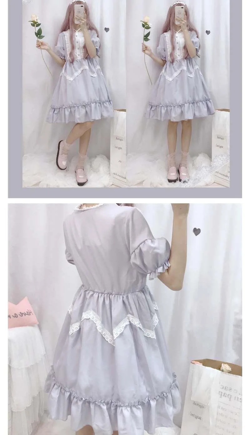 Japanese-Style girlish Lolita Cute Loose Daily Long-Sleeve/Short-Sleeve Spring-Summer Affordable Dress in Blue/Black