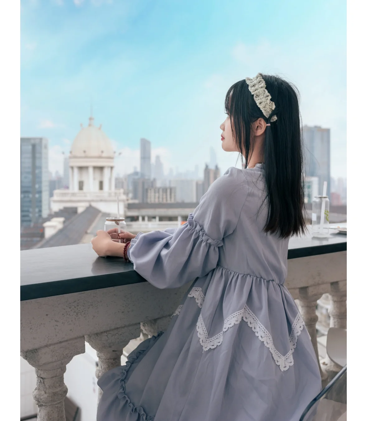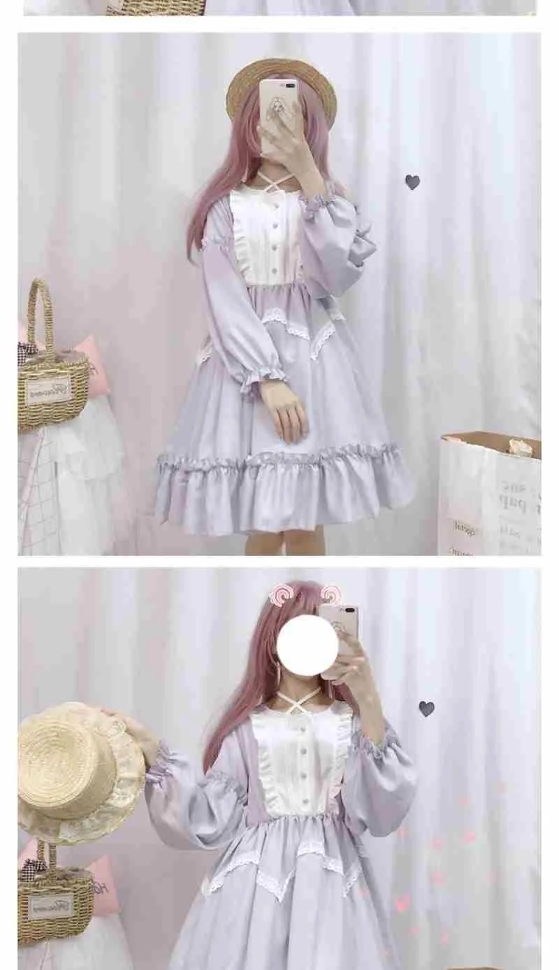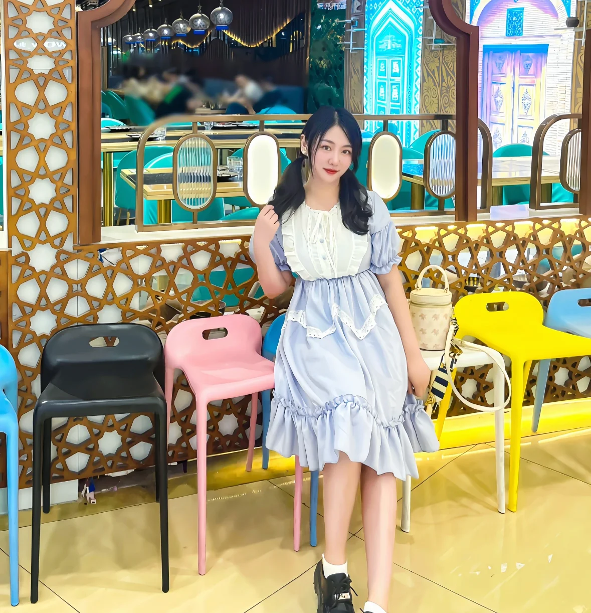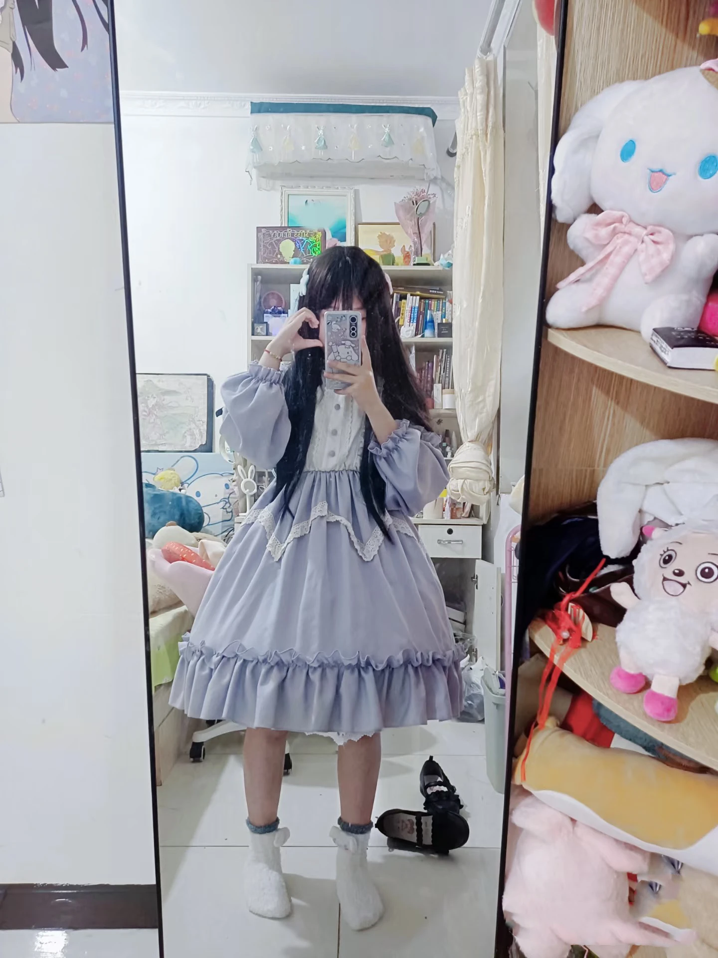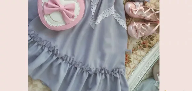 Japanese-Style girlish Lolita Cute Loose Daily Long-Sleeve/Short-Sleeve Spring-Summer Affordable Dress in Blue/Black