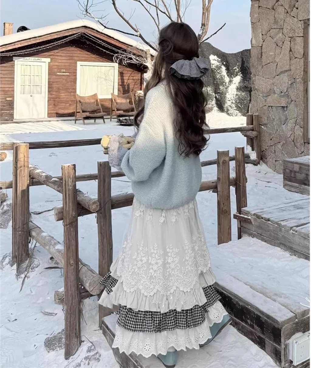【 Winter Romance 】 This lace multi-layered ruffled skirt exudes a gentle and girlish charm
